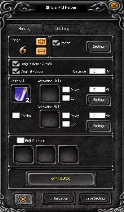 MU Helper is a built-in automated assistant in MU Online that allows the character to automatically fight monsters, use skills and potions, and pick up items based on configured settings. It is designed to simplify farming and leveling without constant manual control.